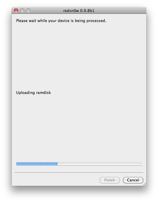 RedSn0w will then begin uploading the new RAM Disk and Kernel.